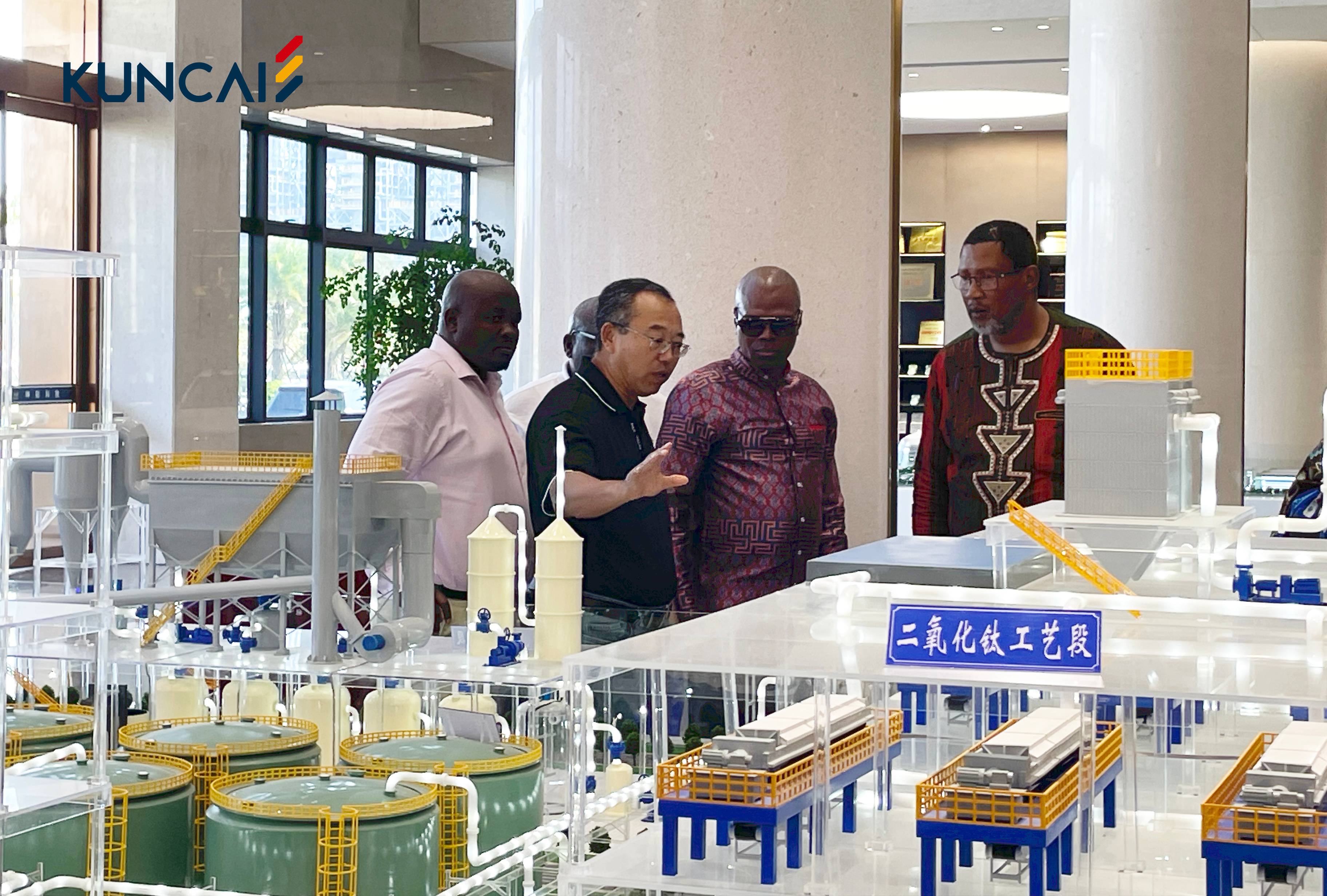 在正太新材厂区,kok官方网页登录技术总监曹志成博士为曼德拉一行详细介绍了坤彩和正太发展规划、厂区布局和生产工艺。就企业自主研发的萃取法氯化钛白生产技术、生产控制系统、销售系统、数字系统、安全管理系统进行全面讲解。